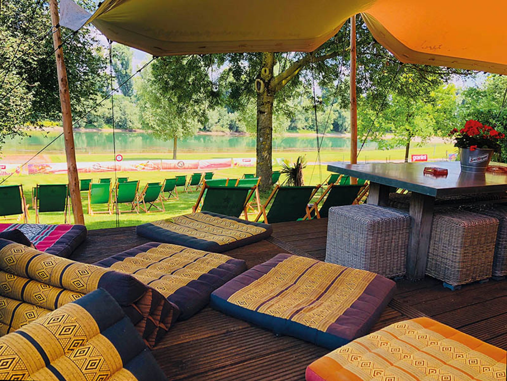 Der perfekte Ort für eine Fotobox oder einfach nur mit den Kollegen die Ruhe genießen. Oder wenn die Sonne mal wieder ihr Bestes gibt, finden Sie hier ein schattiges Plätzchen. Unsere Lounge bietet beides, offen und überdacht.