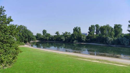 Parkplatz gegenüber, schöner Ausgangspunkt für Spaziergang am Rhein